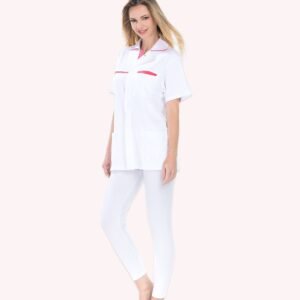 Chasuble femme, fermeture par liens, 2 poches basses, longueur 85 cm.