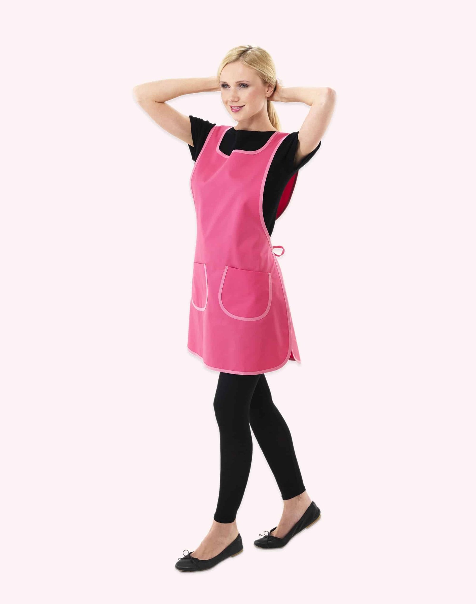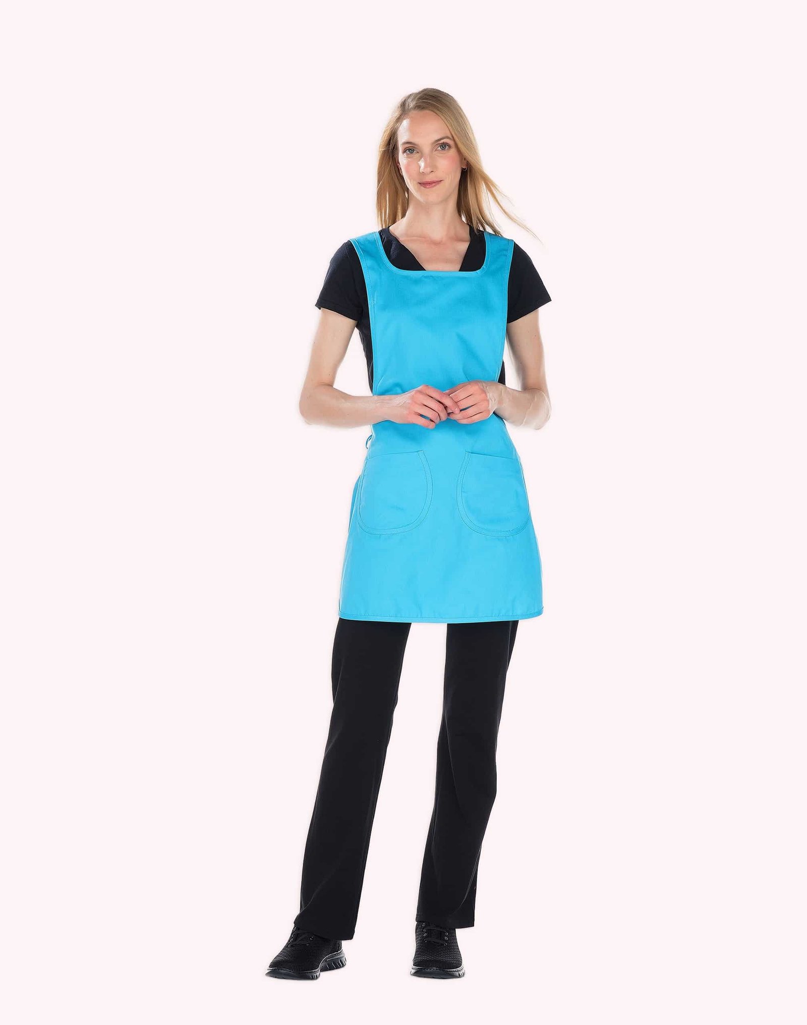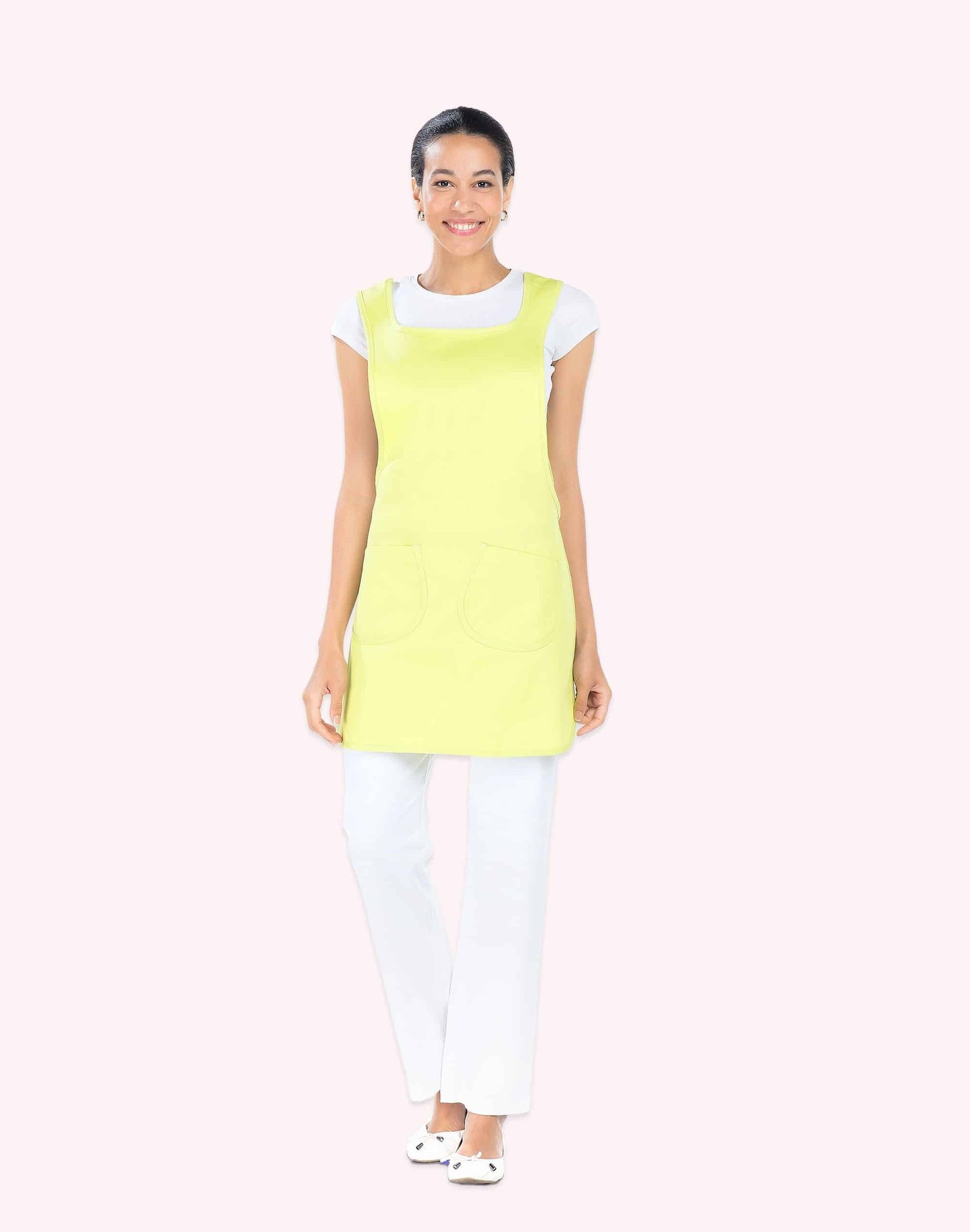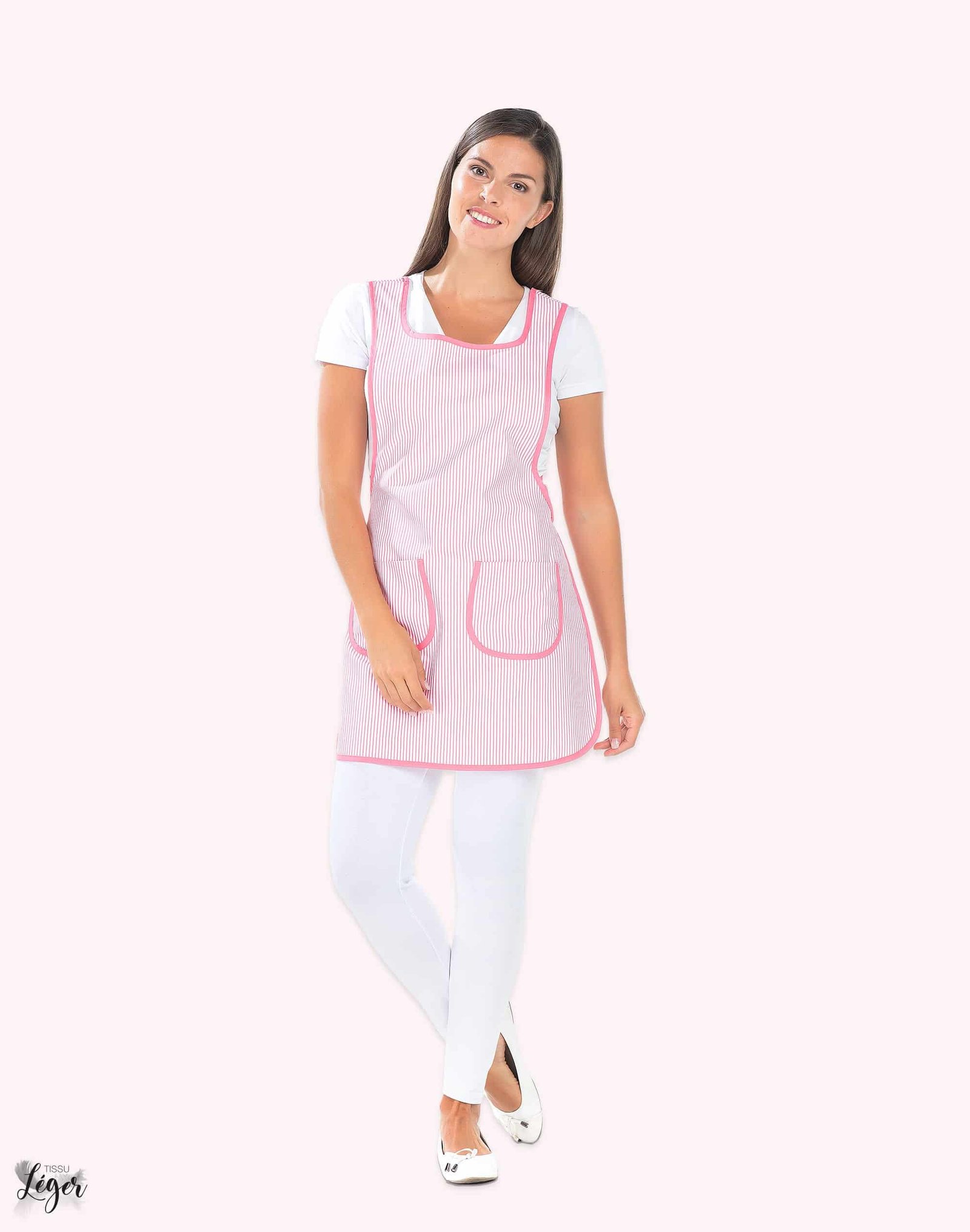 Chasuble femme, fermeture par liens, 2 poches basses, longueur 85 cm.